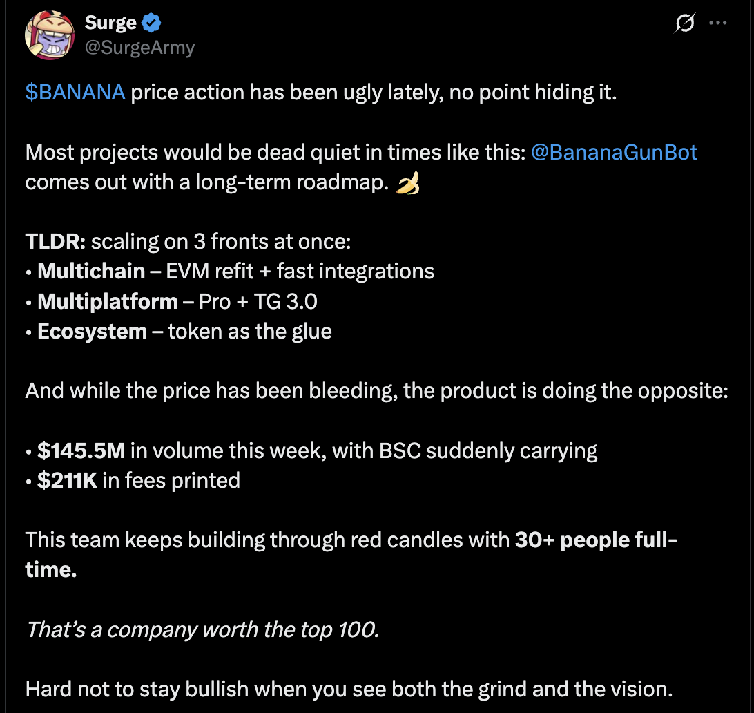 “Banana Gun: if there’s volume somewhere, we’re already there.” 🍌