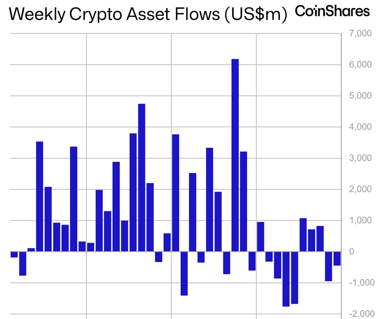 🌍 ETF flows mixed: $446M outflows this week, while XRP and SOL pulled inflows.