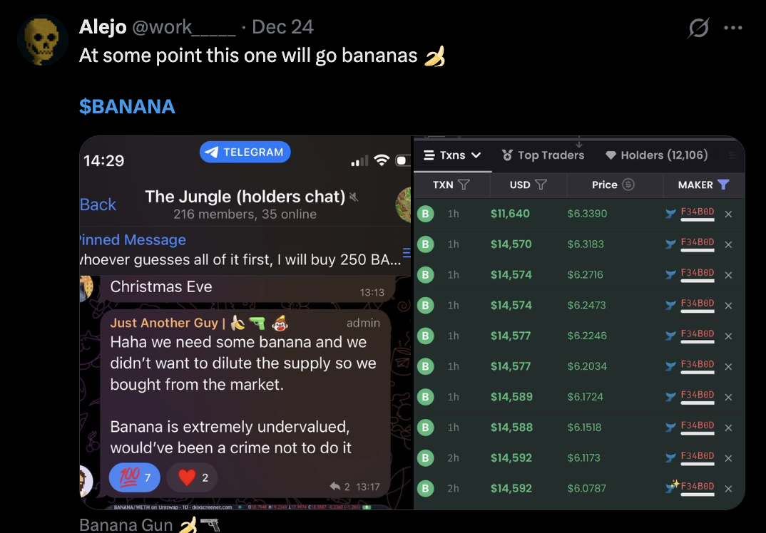 @work_____ kicked things off by joking that at some point this thing will “go bananas” backed by screenshots of our very real buys.